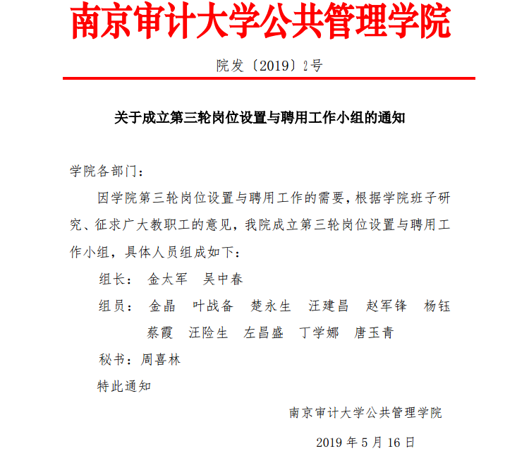 关于成立第三轮岗位设置与聘用工作小组的通知