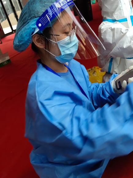 暑假期间,全国多地出现新冠肺炎确诊病例,疫情防控形势十分严峻。南通市通州区东社镇积极开展全员核酸检测实战演练,作为一名在校学生,我报名参与了此次志愿活动,协助医护人员进行核酸检测。我服务的主要内容是信息登录,扫描试管码进行开管封管,引导被检测者有序前往采样处。在此次志愿活动中,我感受到了医护人员的艰辛,也为自己的小小贡献感到自豪。