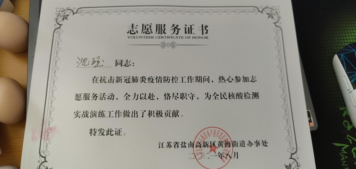 七月下旬疫情再一次严峻起来,盐城市进行性了全民核酸检测演练,我作为入党积极分子,从南京回来后做完自我隔离和核酸检测,就主动到社区报到参与防疫志愿工作了。黄海街道办的核酸检测调查工作正缺人手,我就被借调到街道办,负责电话调查的工作。我的主要任务是询问居民是否检测过核酸、接种过疫苗以及常住地和近期行程的变动情况,并对尚未做过检测的居民进行合理劝说。通过这次志愿工作我感受到防疫工作的重要和基层工作人员的辛苦,也对我党不忘初心牢记使命的精神也有了更深刻的理解。
