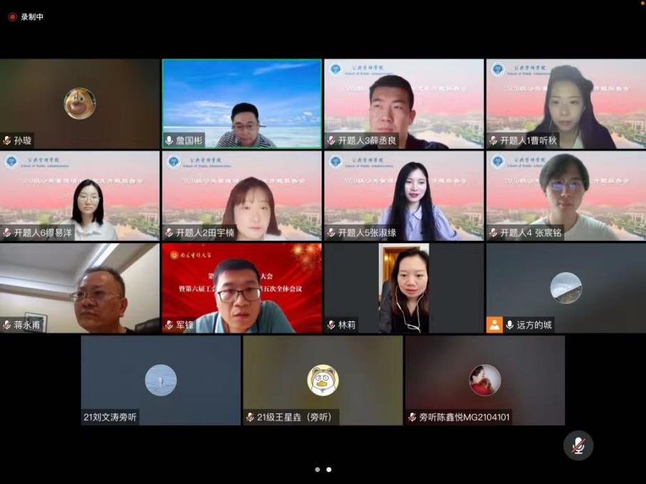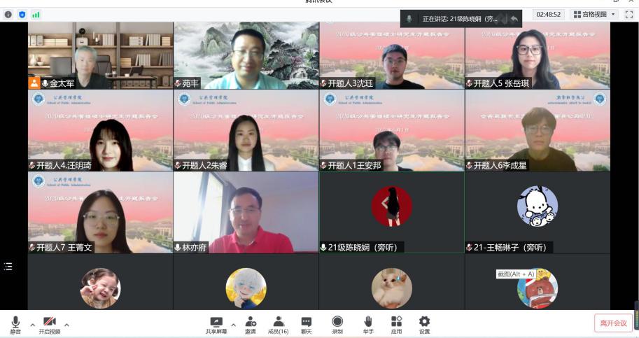 2022年6月1日下午,成人卡通 公共管理学院举行了2020级硕士研究生开题报告会。为了贯彻落实疫情防控的需要,本次开题报告会依托腾讯会议平台开展线上会议,成人卡通 26名研究生参与其中,并获得全部通过的好成绩,开题报告会圆满结束。
