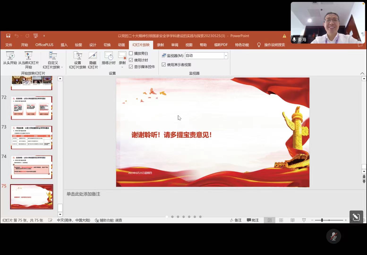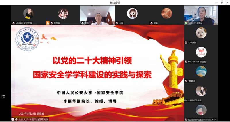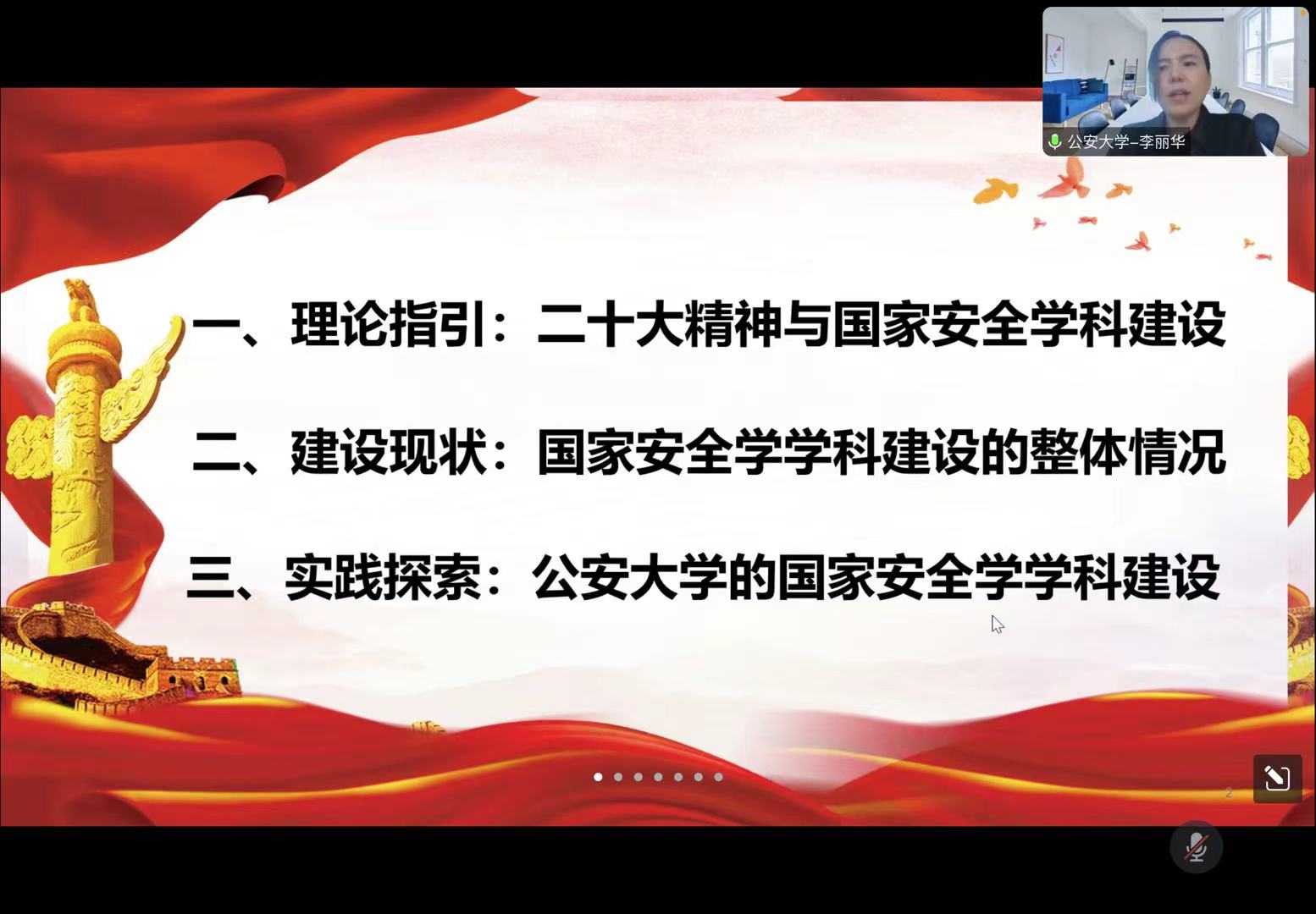 2023年5月25日下午,成人卡通 公共管理学院特邀中国人民公安大学成人卡通 副院长李丽华教授开展了主题为“国家安全学学科建设的路径思考”的研讨会。本次会议由姜海副校长、公共管理学院领导班子、公共管理学院教师代表及全体硕士研究生参加,公共管理学院副院长赵军锋教授主持。