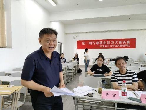 2023年6月14日下午,公共管理学院面向全校举办的“第一届行政职业能力大赛”决赛于敏知207顺利举行。通过3月29日初赛决出的9名参赛者分别来自政府审计、内部审计、会计学院、经济学院、法学院和公共管理学院,公共管理学院党委副书记汪建昌、PPE系主任汪建康参加活动。