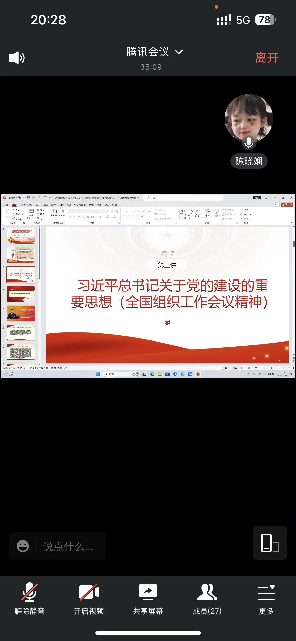 7月22日,由党支部支委陈晓娴领学,党员同志们集体学习了习近平总书记关于党的建设的重要思想。全面建设社会主义现代化国家,全面推进中华民族伟大复兴,关键在党,关键在人。在全国组织工作会议召开之际,习近平总书记对党的建设和组织工作作出重要指示:“要坚持以习近平新时代中国特色社会主义思想为指导,全面贯彻党的二十大精神,深刻领会党中央关于党的建设的重要思想”。全国组织工作会议从十三个方面对习近平总书记关于党的建设的重要思想作了系统阐述。我们要坚持以习近平新时代中国特色社会主义思想为指导,深入学习贯彻习近平总书记关于党的建设的重要思想,确保党在新时代坚持和发展中国特色社会主义的历史进程中始终成为坚强领导核心。