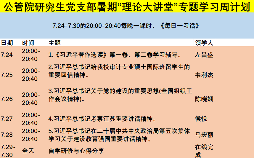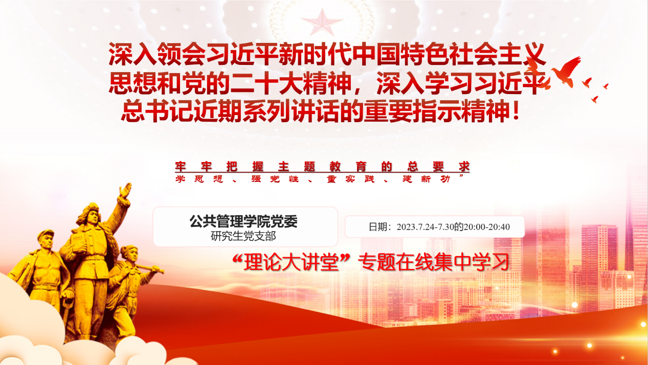本次学习周的学习方式充分利用专题网站、“学习强国”等多种学习资源,通过领导带头学、专题讨论学、专家辅导学、党课示范学、自学等多种方式,实现党员学生理论学习全覆盖,并广泛开展宣传宣讲。公共管理学院研究生党员同志进一步学习了习近平总书记近期系列讲话的重要指示精神的重大意义和丰富内涵,进一步明确学习和工作中要强化用其武装头脑、指导实践、推动工作的自觉性主动性。发挥党支部战斗堡垒的作用,把党支部作为党员学生理论学习主阵地,在突出政治性、提升参与性、增强实践性上下功夫,推动主题教育入脑入心入魂。