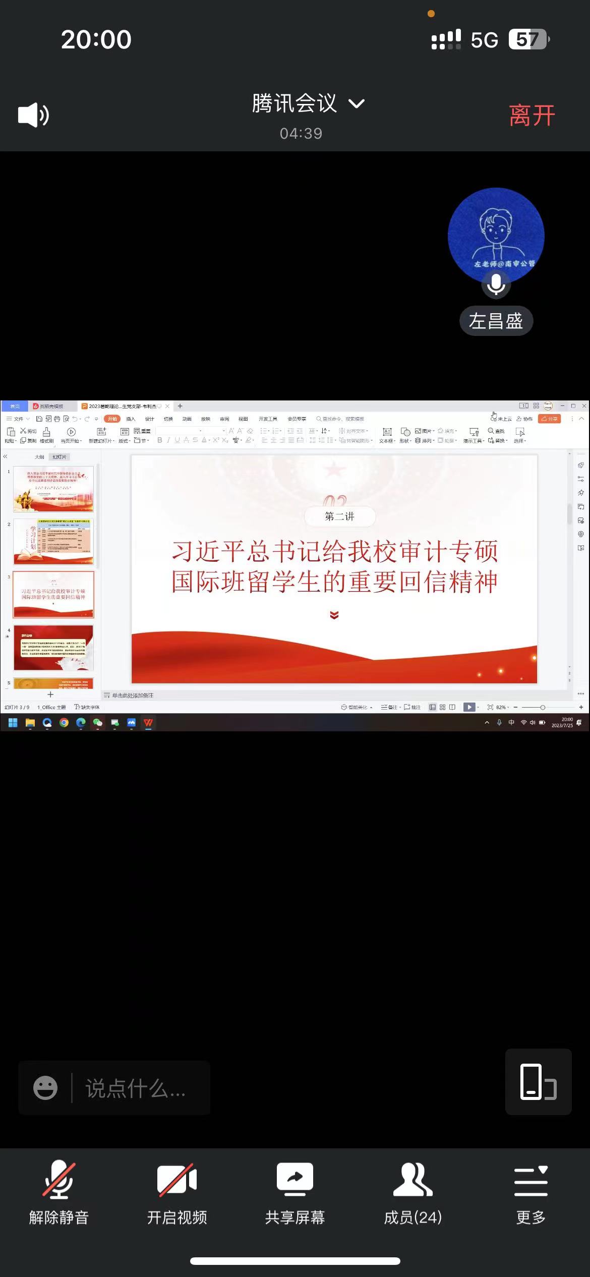 7月21日,由党支部支委韦利杰领学,学习了习近平总书记给成人卡通 审计专业硕士国际班留学生的重要回信精神。党员同志们纷纷表示,得知习近平总书记给成人卡通 审计专硕国际班的留学生回信时,内心非常骄傲和倍受鼓舞,作为审大学子,在学习习近平总书记的回信中,深感使命在肩、责任重大,相信在习近平总书记的鼓励下,南审学子一定能够胸怀理想,努力拼搏。