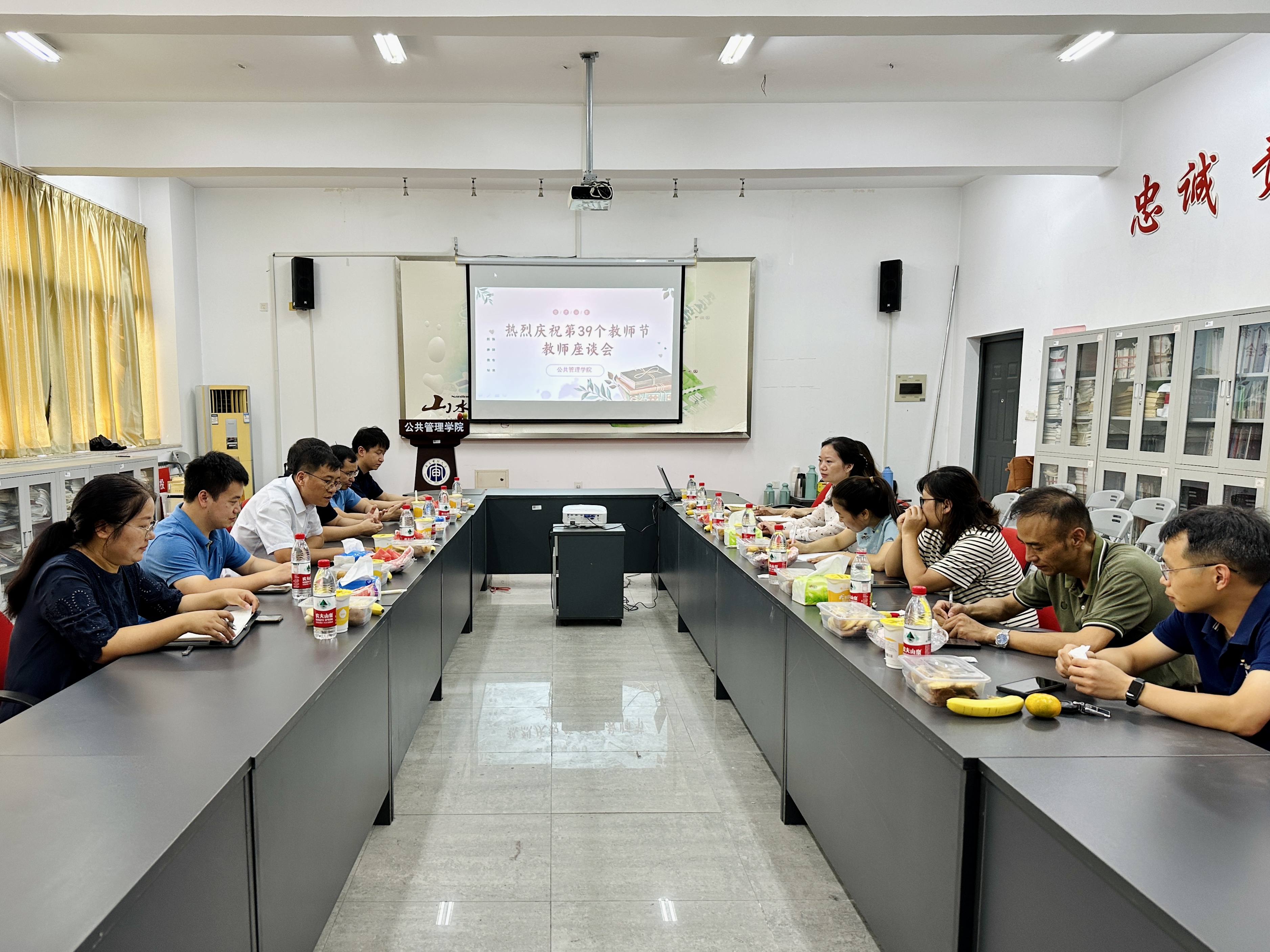 在第39个教师节来临之际,9月7日下午,公共管理学院在敏达楼305会议室召开教师节座谈会。学院领导班子、教师代表出席了会议。此次座谈会围绕“躬耕教坛,强国有我”主题进行交流,会议由学院党委副书记(主持)汪建昌主持。