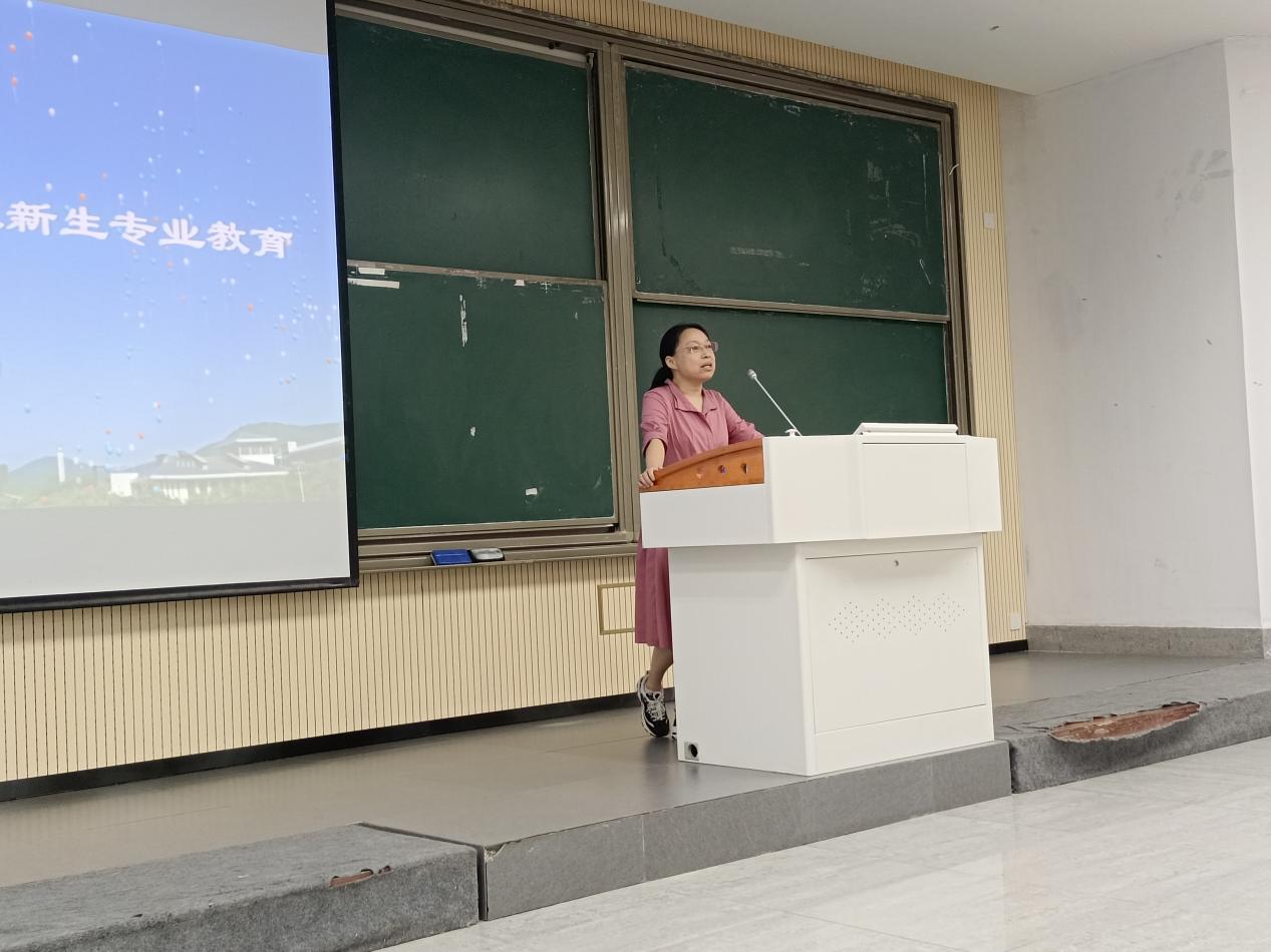 紧接着,行政管理专业系主任杨钰热烈欢迎新生加入行政管理的大家庭。通过介绍行政管理学的发展历程,杨老师告诉同学们要想拥有更好的发展,需要更多的自主学习。杨钰老师向在场的新生提出了一个问题——“什么样的大学生活值得一过”,在新生思考之际,杨老师向同学们展示了历届行政管理专业学生的毕业去向,并希望同学们能够深入思考,带着问题充实且快乐地度过大学四年。