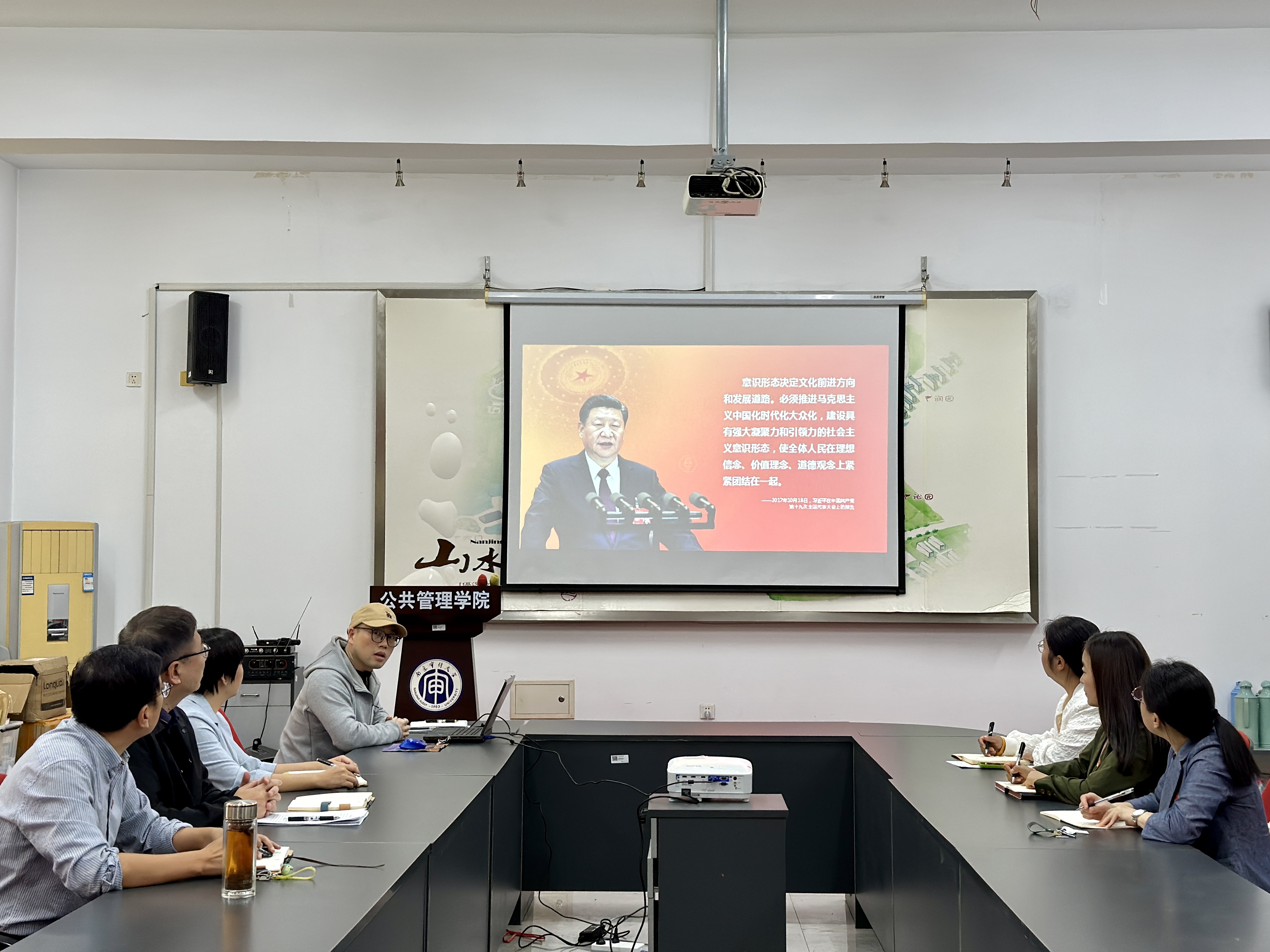 10月11日下午,公共管理学院党委理论学习中心组成员在敏达305开展宣传思想文化工作专题学习,院党委副书记(主持)汪建昌主持会议。