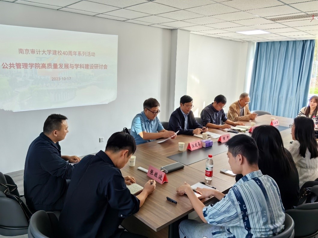 2023年10月17日下午,公共管理学院在崇和楼会议室召开高质量发展与学科建设研讨会。本次会议特邀湖南工商大学黄昕校长做专题交流和指导。副院长(主持)赵军锋教授、学科方向带头人蒋永甫教授及行政助理张振波副教授以及研究生代表参与了此次研讨。研讨会由党委副书记(主持)汪建昌教授主持。