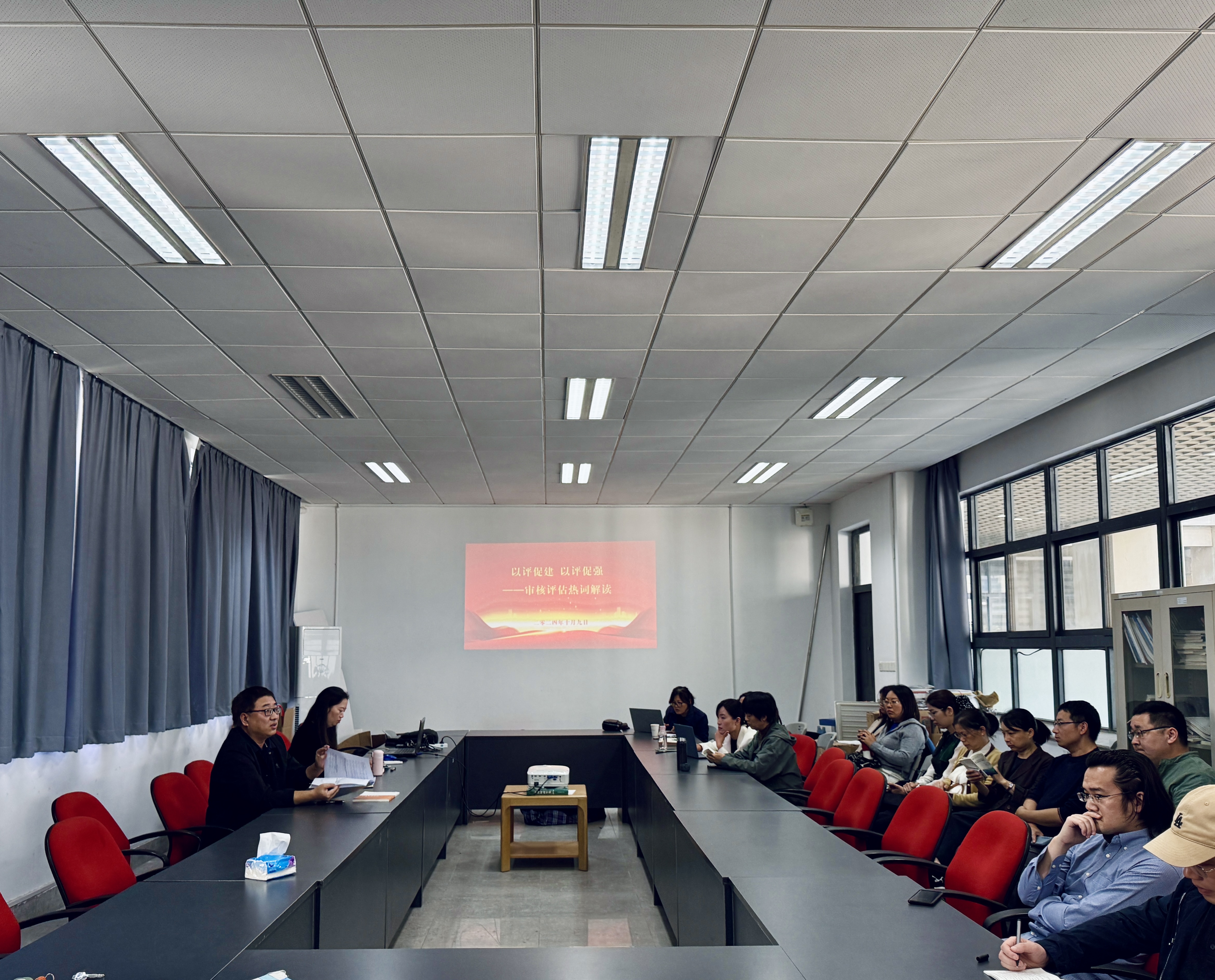 10月9日下午,公共管理学院召开“以评促建 以评促强”审核评估集中学习会。学院全院教职工参加会议,会议由学院党委副书记(主持)汪建昌主持。