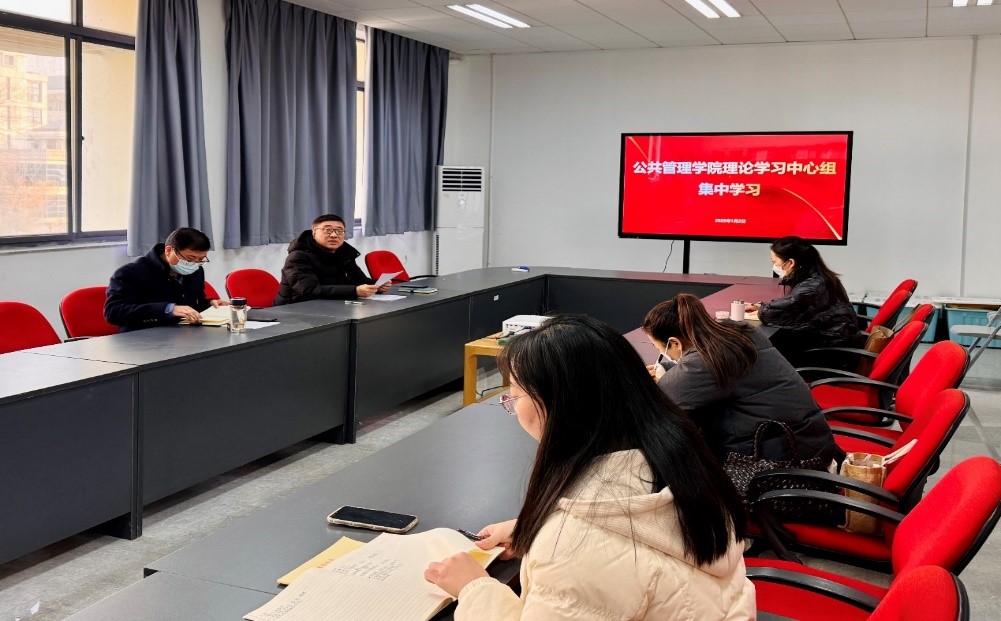 1月3日,公共管理学院党委全体成员在竞慧西209集中学习,会议由学院党委副书记(主持)汪建昌主持。