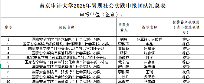 根据校团委《关于2025年成人卡通 大学生暑期文化科技卫生“三下乡”社会实践活动团队项目申报的通知》和《成人卡通 关于开展2025年暑期社会实践活动团队项目申报的通知》的要求,经过宣传动员,在学生团队自行申报的基础上,学院团委于6月22日组织立项评审,拟推荐成人卡通 “啄木鸟队”社会实践小分队等10支团队为校级团队。现将推荐名单予以公示。
